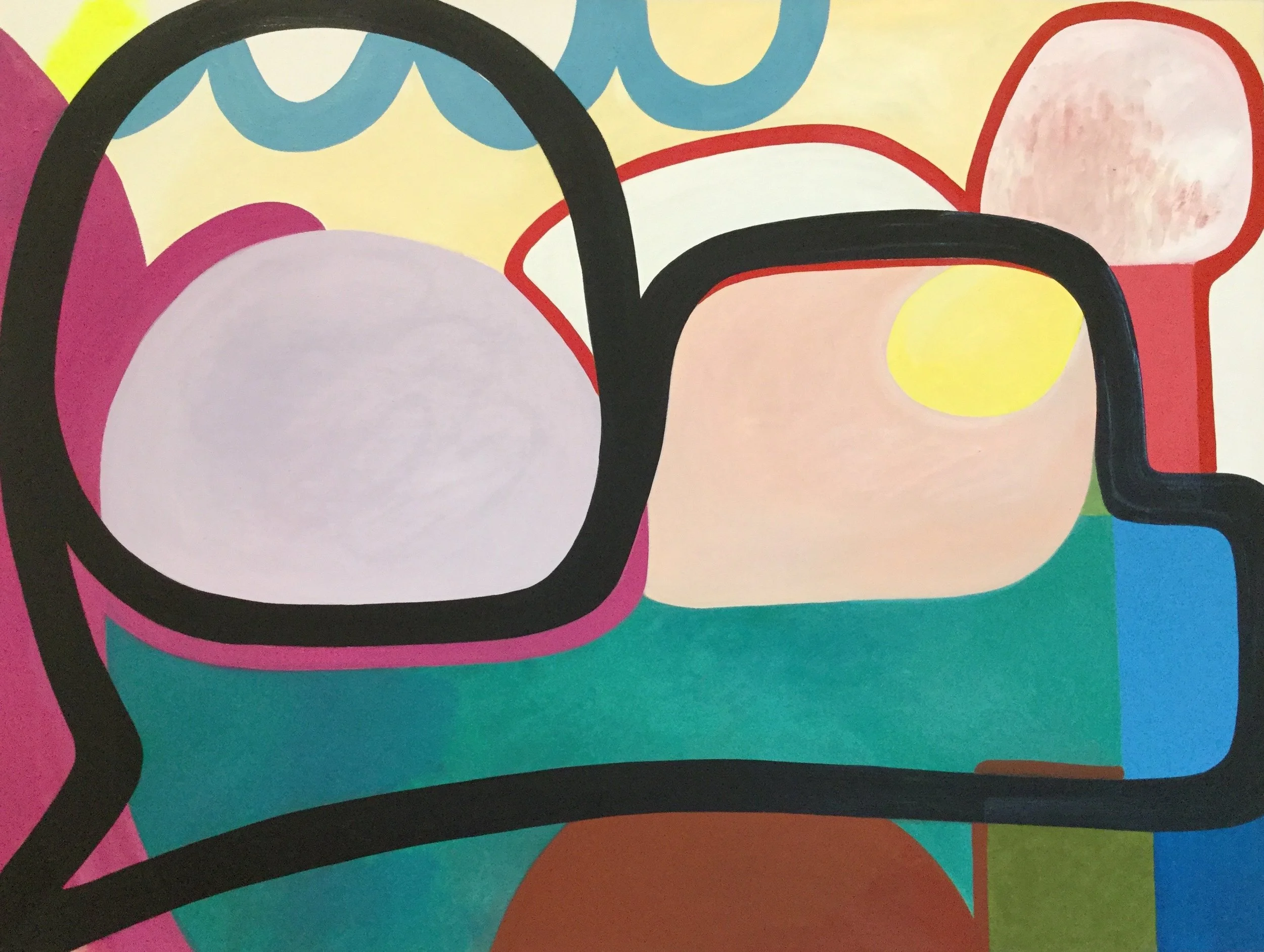 From the series 'O espaço onde todos cabem'. Oil and spray paint on canvas, 130x150 cm, 2018.